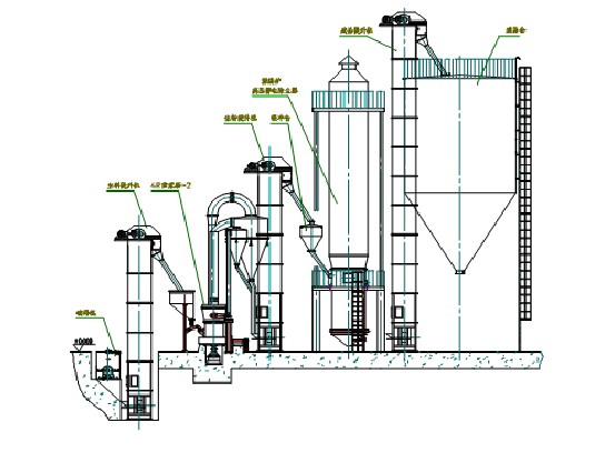 1. 破碎機(jī)將大尺寸的石膏礦石破碎成小于25mm的小塊顆粒,經(jīng)過儲存及輸送進(jìn)入磨機(jī)進(jìn)行粉磨,經(jīng)選粉機(jī)將粉磨后達(dá)到產(chǎn)品所需細(xì)度的石膏生粉送入沸騰爐進(jìn)行煅燒,其余部分返回磨機(jī)進(jìn)行再次粉磨直至合格。煅燒后的合格石膏粉送入熟料倉儲存或送入制品車間使用。